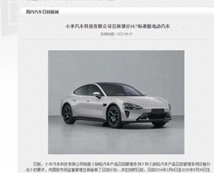 在过去一段时间,小米汽车可以说销量依旧优秀,9月份交付数量超过了4万辆,小米YU7的交付量也上来了,但与此同时配资坊股票配资网址,之前小米SU7被召回11万辆,还被市场监管总局主管的官方媒体《产品可靠性报告》的账号“中国质量报告”给小小的轻锤了一把:11万辆小米SU7并非例行OTA,而是受调查后被动召回……